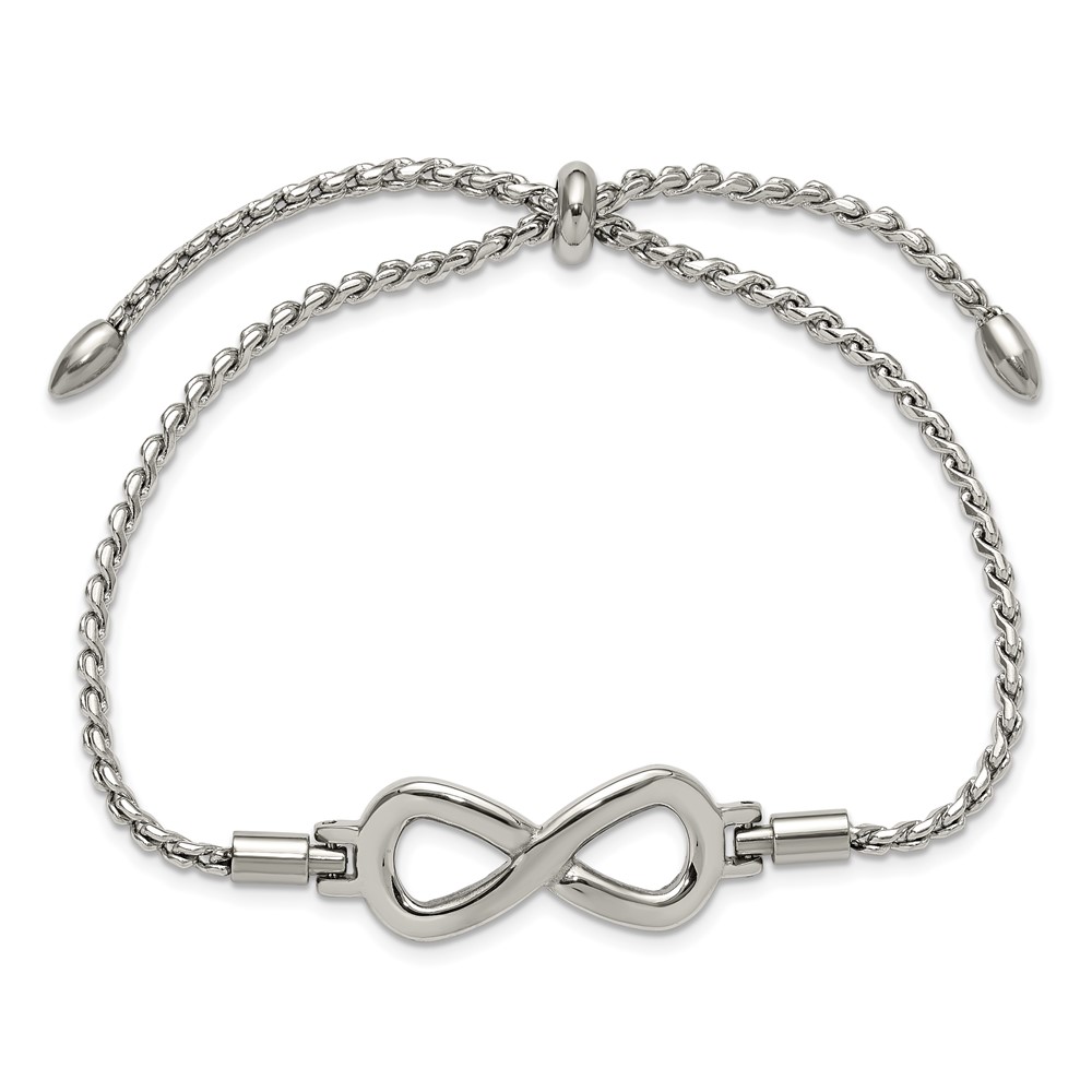 Chisel Stainless Steel Polished Infinity Symbol Adjustable Bolo Bracelet