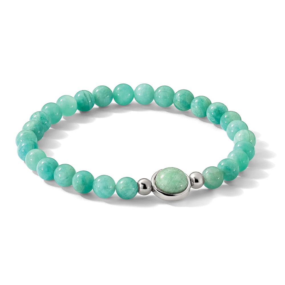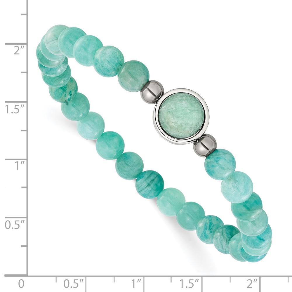 Chisel Stainless Steel Polished 6.5mm China Amazonite Beaded 7 inch Stretch Bracelet