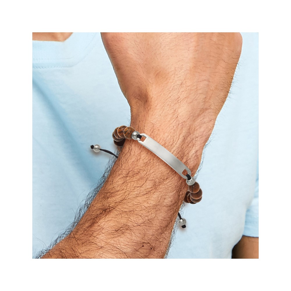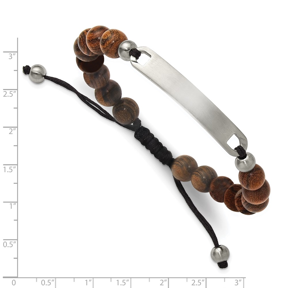 Chisel Stainless Steel Brushed 8mm Tigerwood Beaded Black Nylon 7 inch to 9 inch Adjustable ID Bracelet