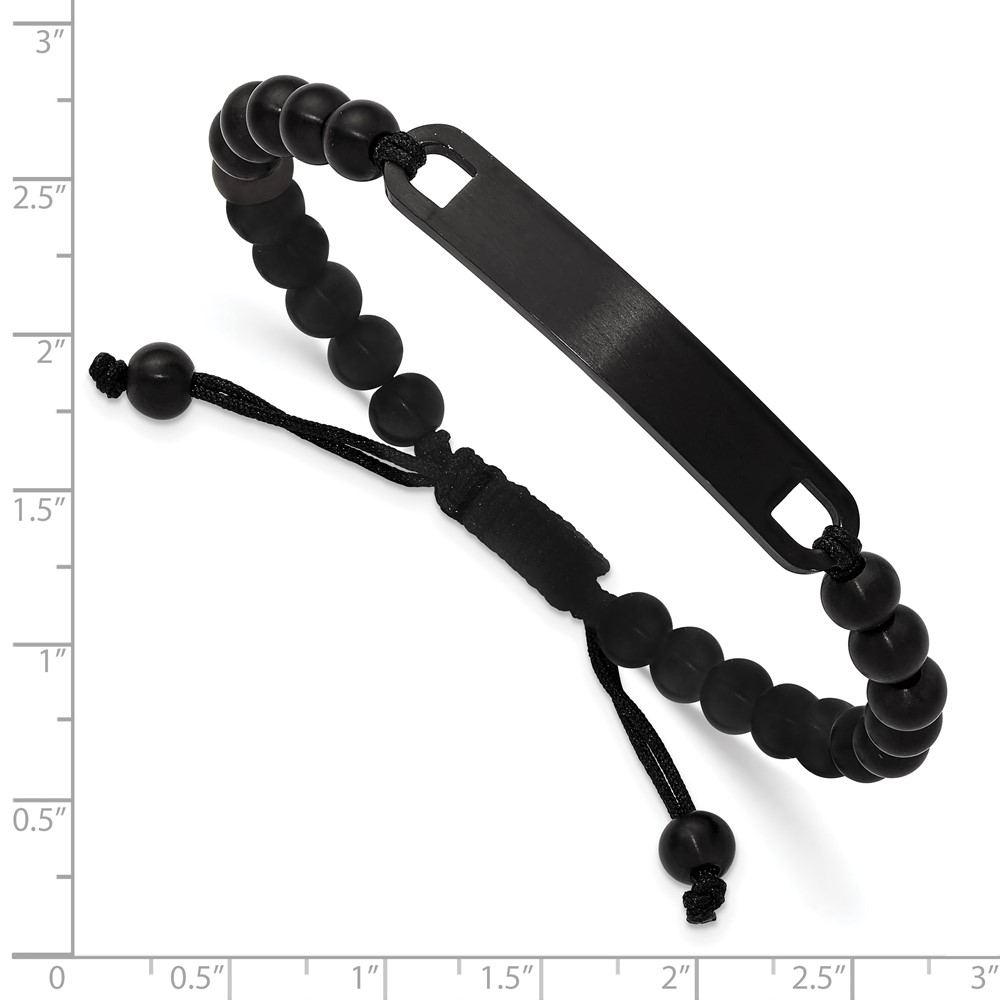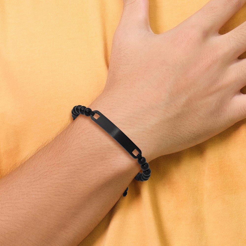 Chisel Stainless Steel Brushed Black IP-plated 6mm Beaded Black Nylon 6.25 inch to 8 inch Adjustable ID Bracelet