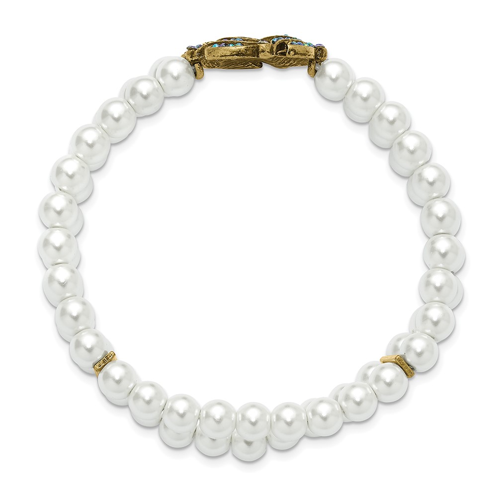 1928 Antique Gold-tone Imitation Pearl and Glass Wreath Stretch Bracelet