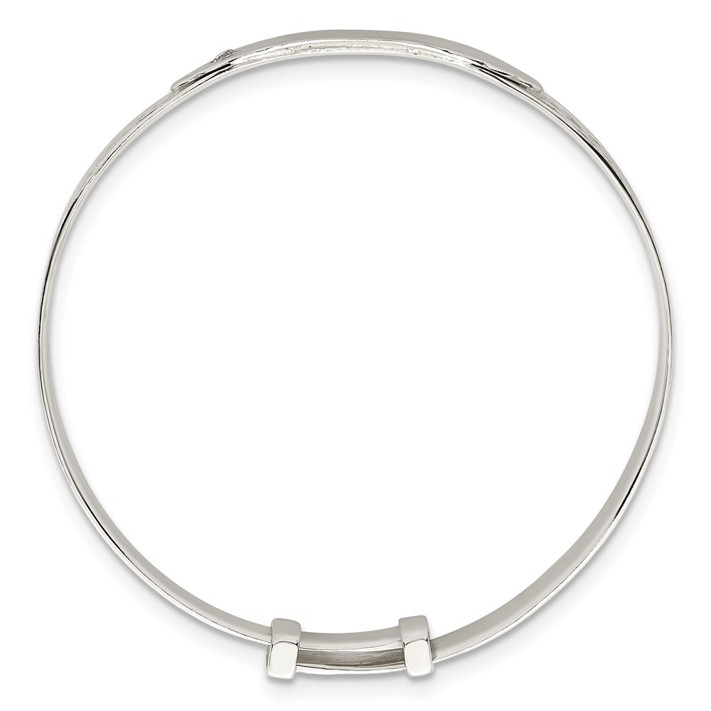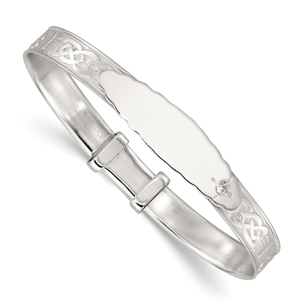 Sterling Silver Polished White CZ Claddagh Expandable Slip-on Baby ID Bangle