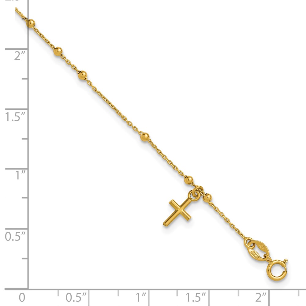 Leslie's 14K Polished Beaded Cross w/.5in ext. Rosary Bracelet