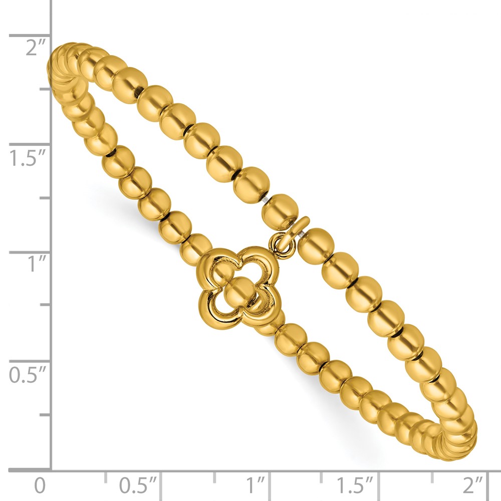 Leslie's Sterling Silver Gold-tone Polished Beads w/Charm Stretch Bracelet