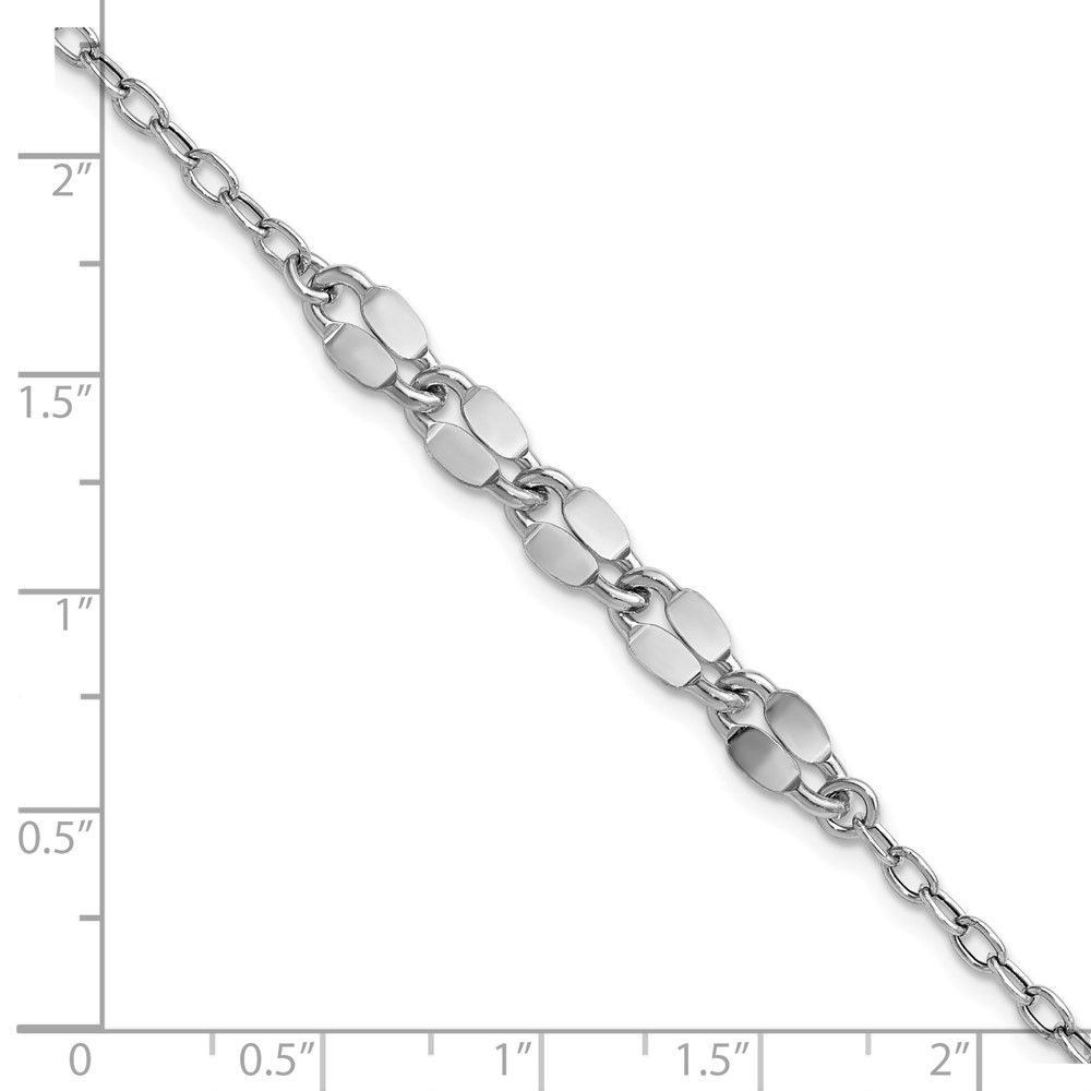 Leslie's Sterling Silver RH-plated Pol. Fancy Link w/1in ext. Bracelet
