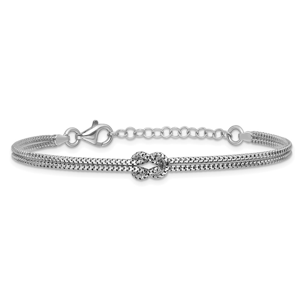 Leslie's Sterling Silver RH-plt Pol. 2-Strand Knot w/1in ext. Bracelet