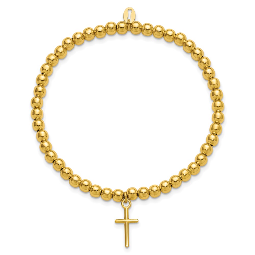 Leslie's Sterling Silver Gold-tone Pol. Cross Beaded Stretch Bracelet