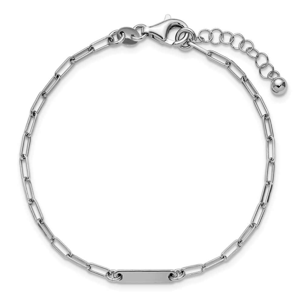 Leslie's Sterling Silver RH-plated Polished Paperclip Bar w/ 1in ext. Brace