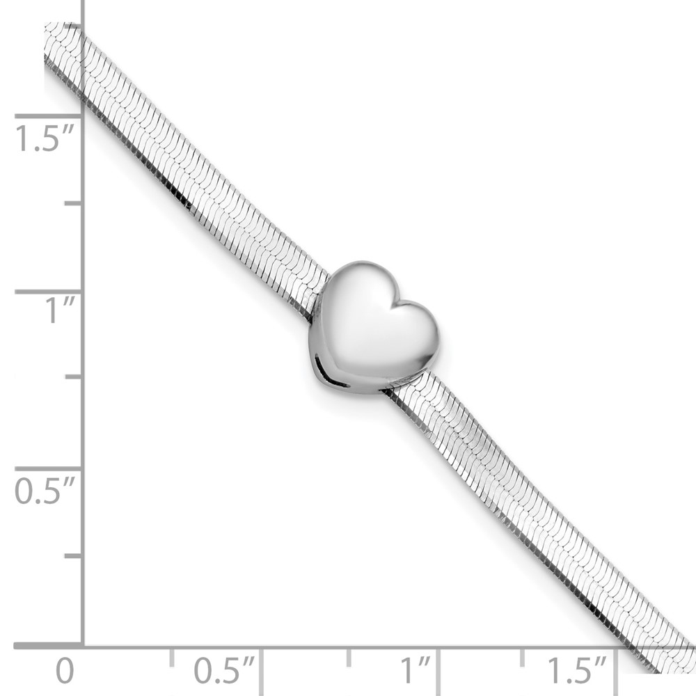 Leslie's Sterling Silver RH-plated Polished Heart Herringbone w/ 1in ext. B
