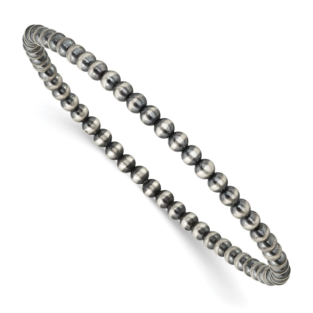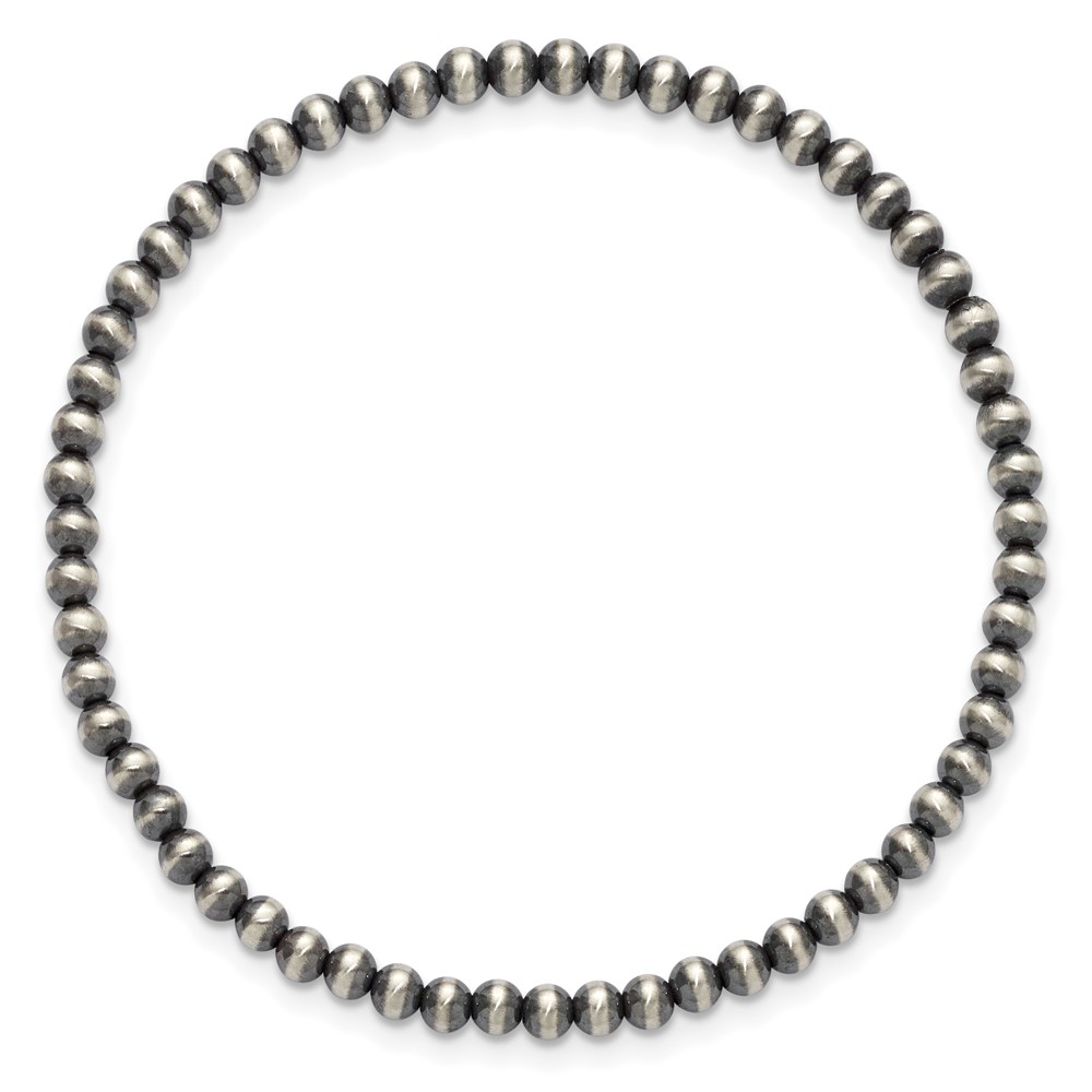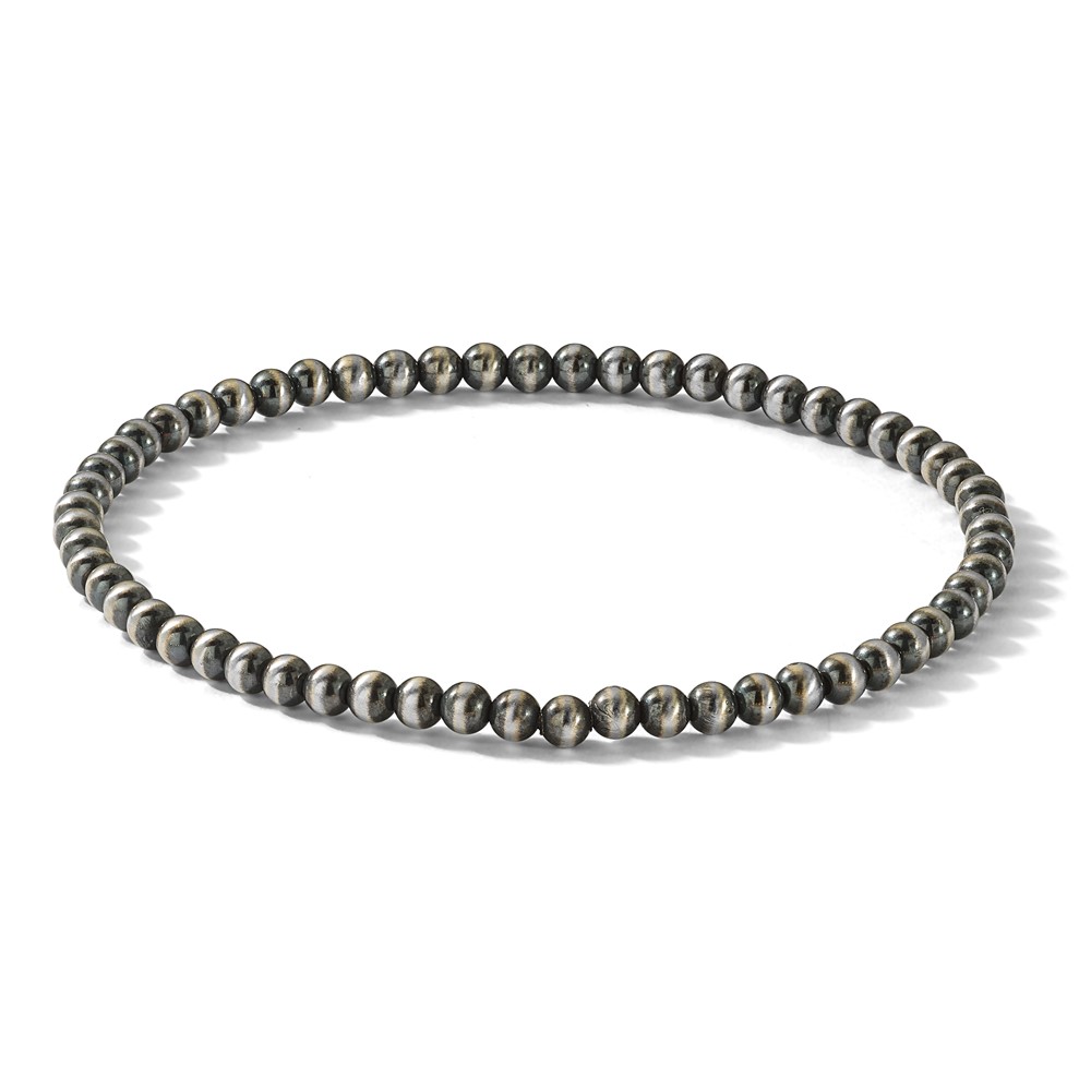 Sterling Silver 6.5in 3.00mm Navajo Style Beaded Stretch Bracelet
