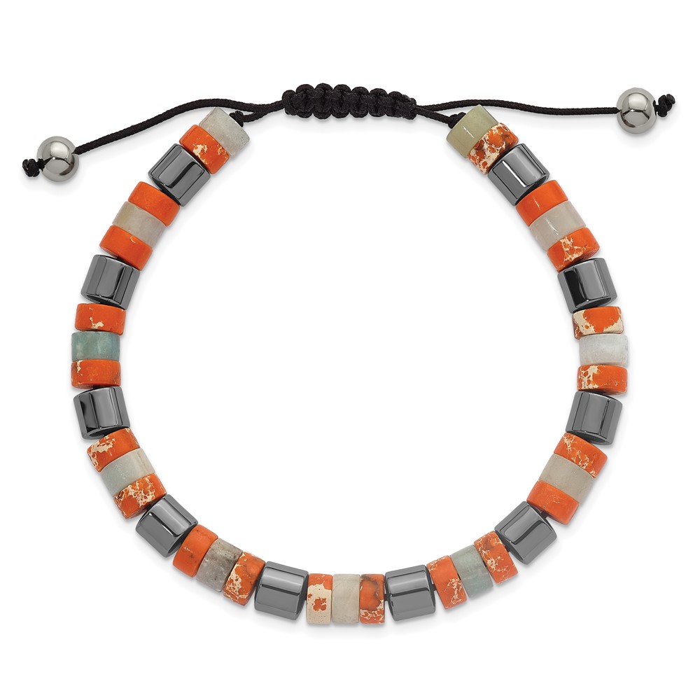 Stainless Steel Polished Hematite/OrangeEmperor Stone Nylon Adjust Bracelet