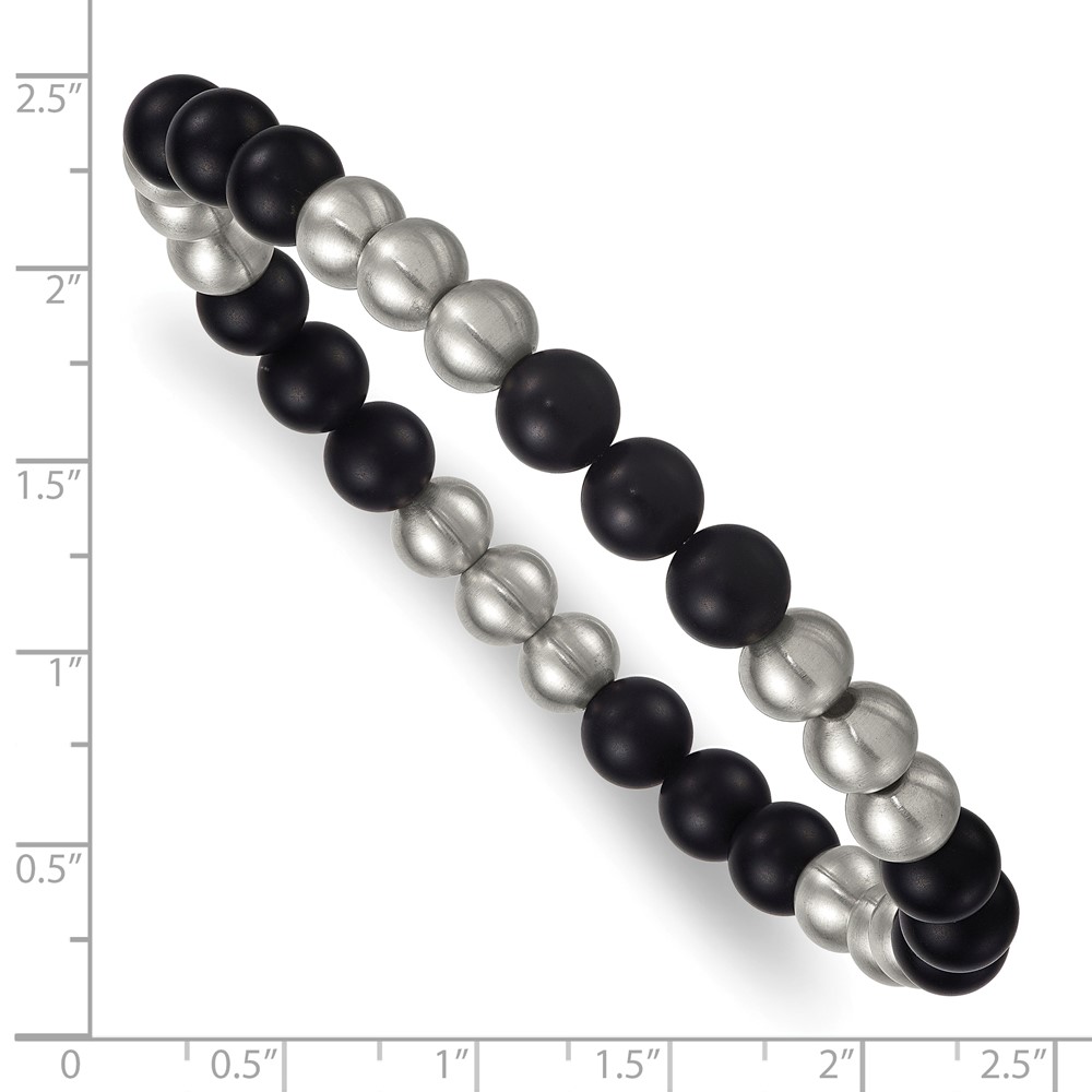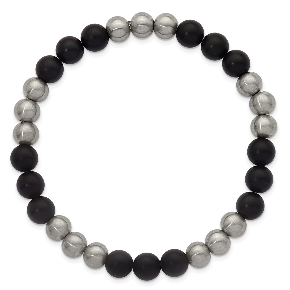 Stainless Steel Brushed Matte Onyx Beaded Stretch Bracelet