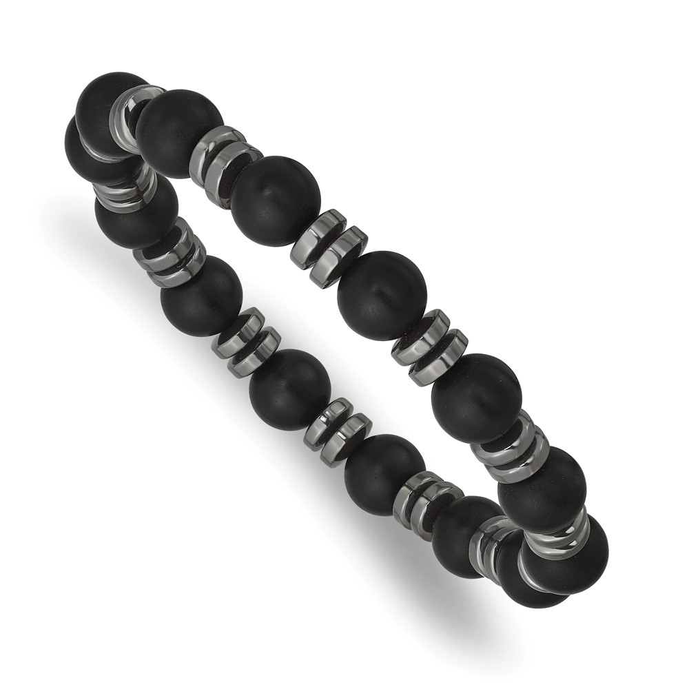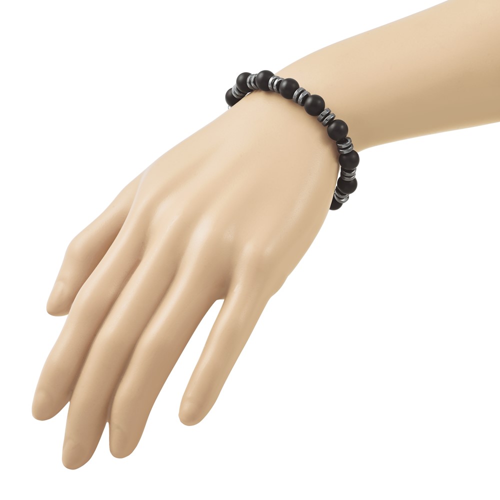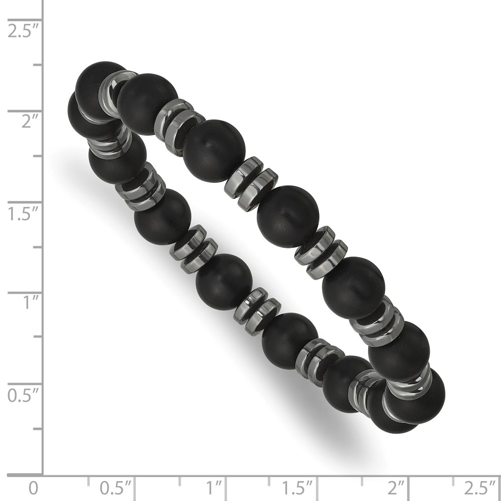 Beaded Hematite and 8.30mm Matte Onyx Stretch Bracelet
