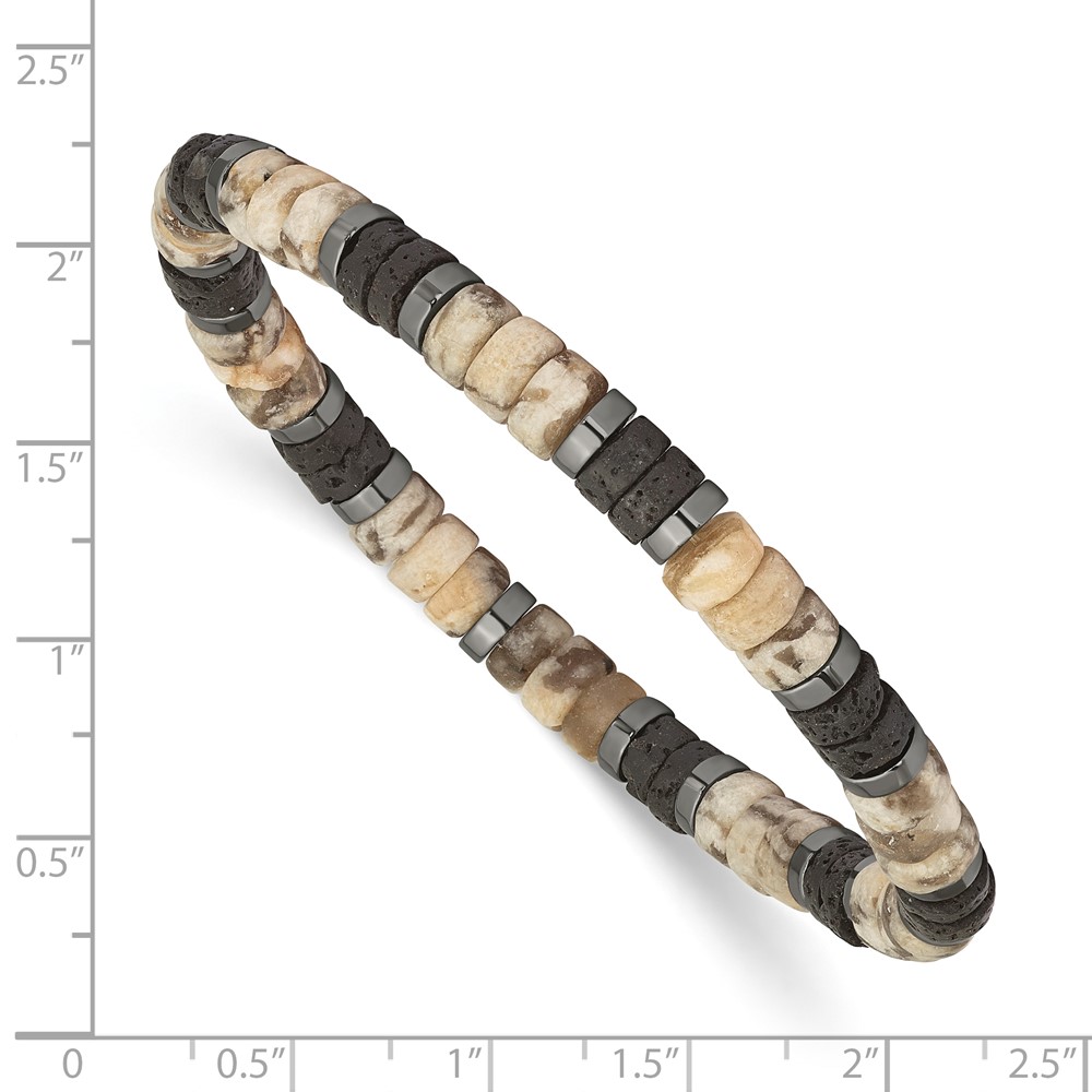 Beaded Australian Matte Agate, Lava Stone, Hematite 6mm Stretch Bracelet