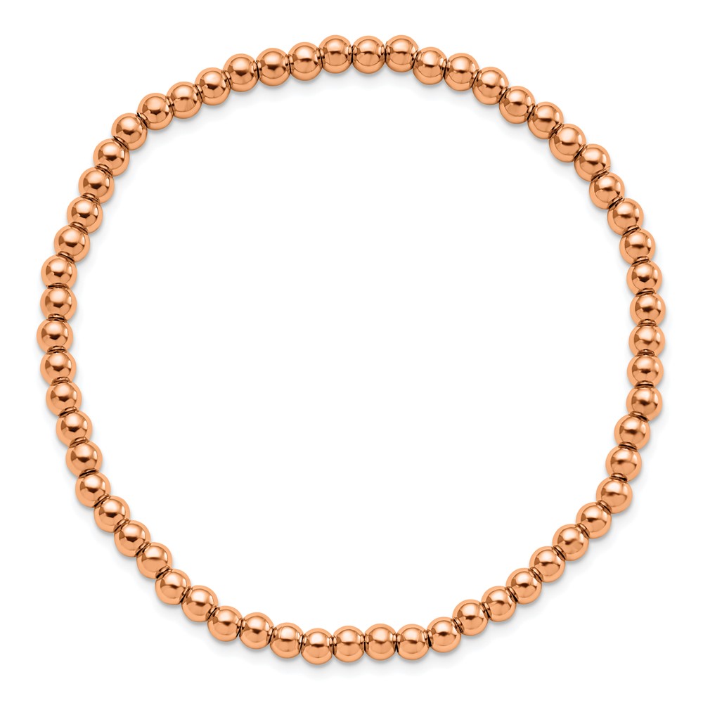 Stainless Steel Polished Rose IP 4mm Beaded Stretch Bracelet
