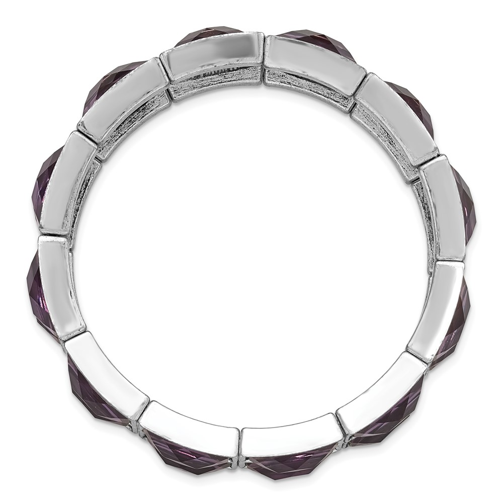 1928 Jewelry Silver-tone Frame Purple Faceted Epoxy Stones Stretch Bracelet