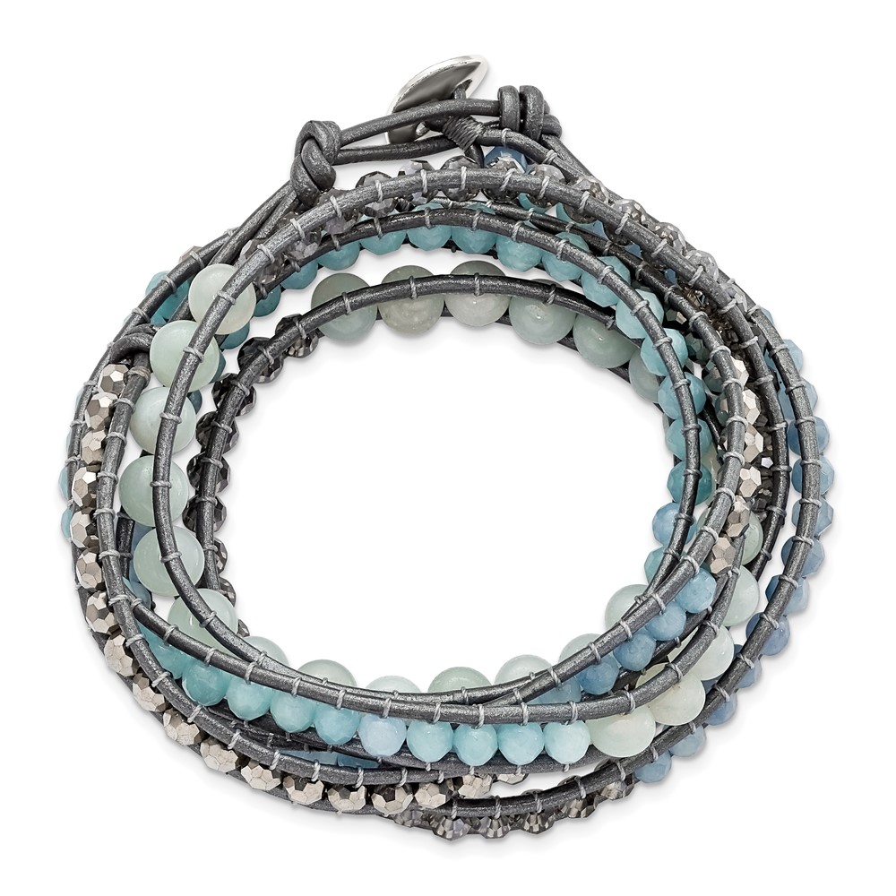 Aquamarine/Blue Quartz/Crystal/Leather Multi-wrap Bracelet