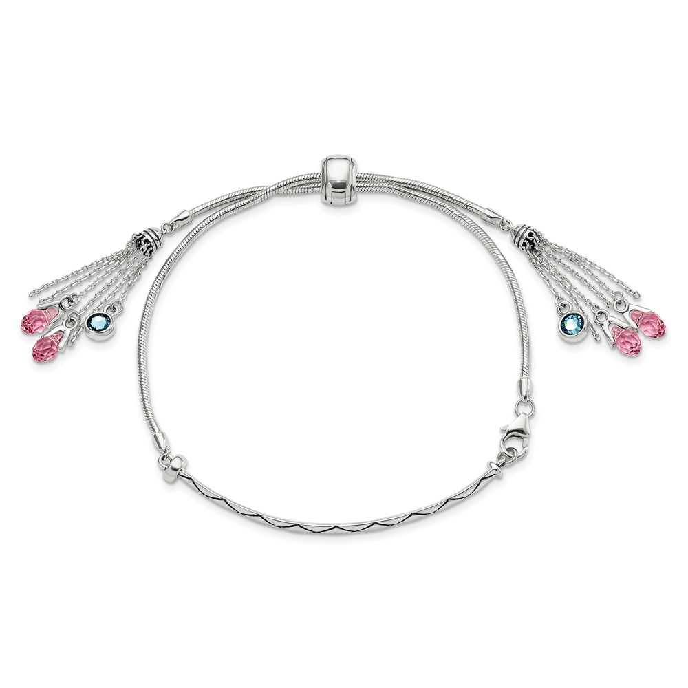 Sterling Silver Antiqued Crystal Briolette Adjustable Bracelet