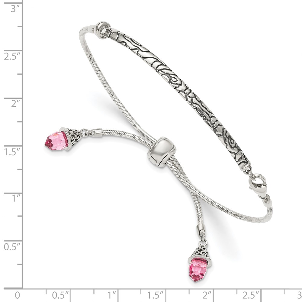 Sterling Silver Antiqued Pink Crystal Briolette Adjustable Bracelet