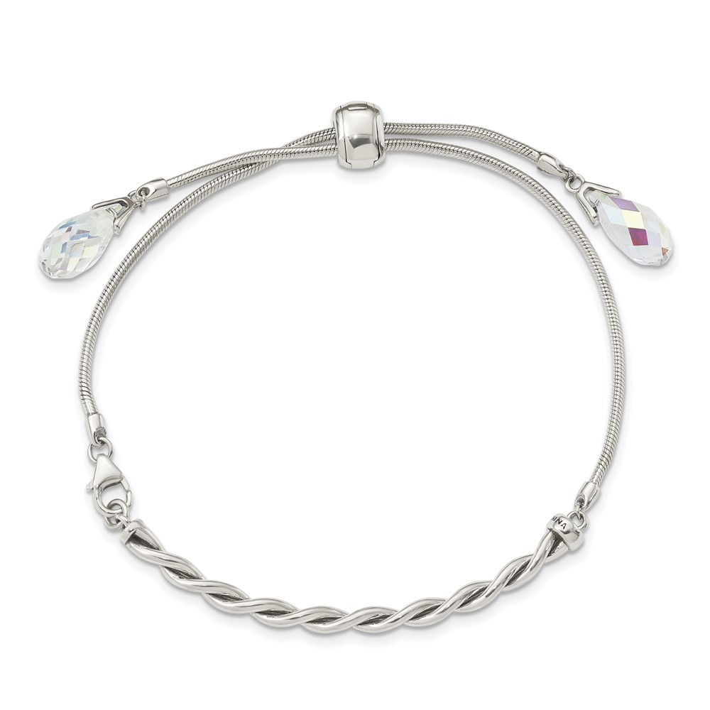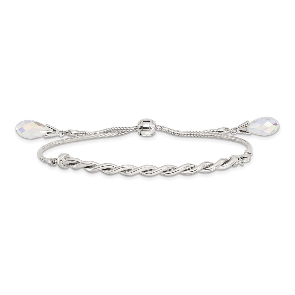 Sterling Silver Antiqued Crystal Tassel Adjustable Bracelet