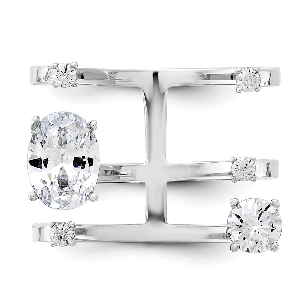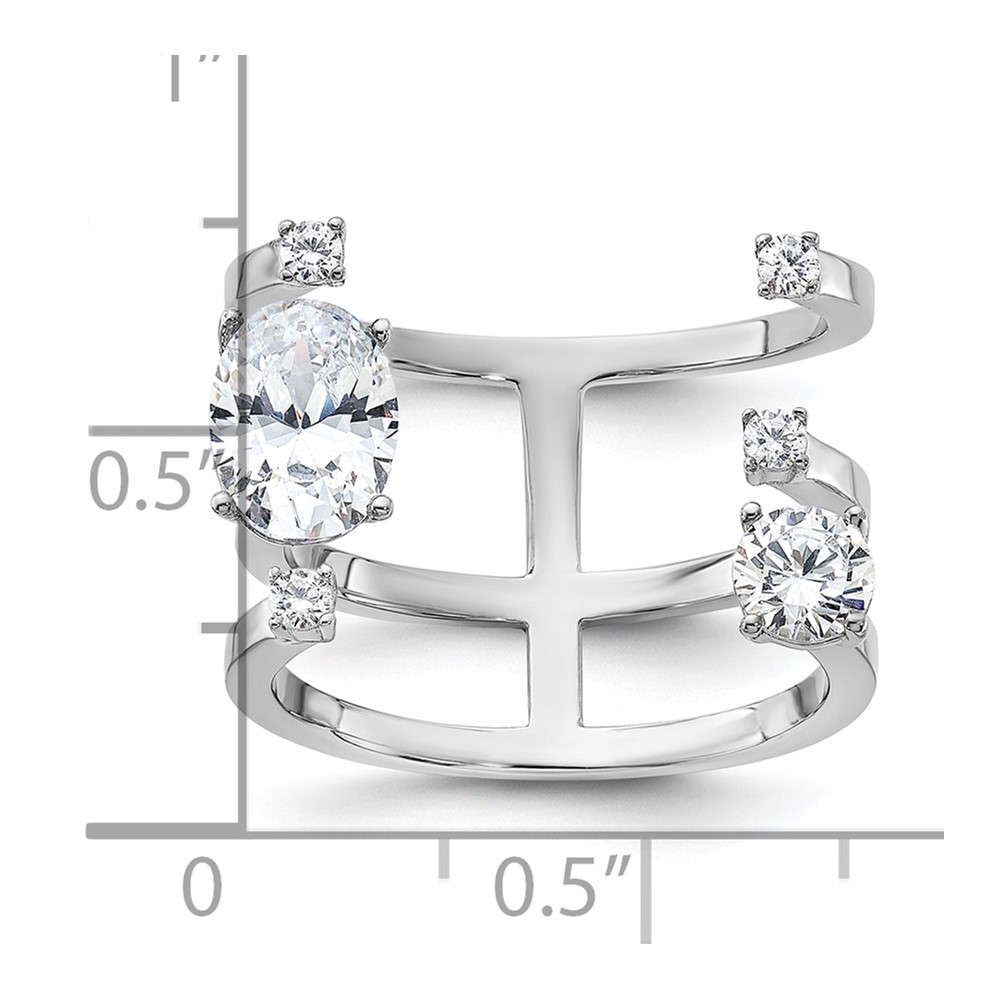 Sterling Silver Rhodium-plated CZ Adjustable Ring