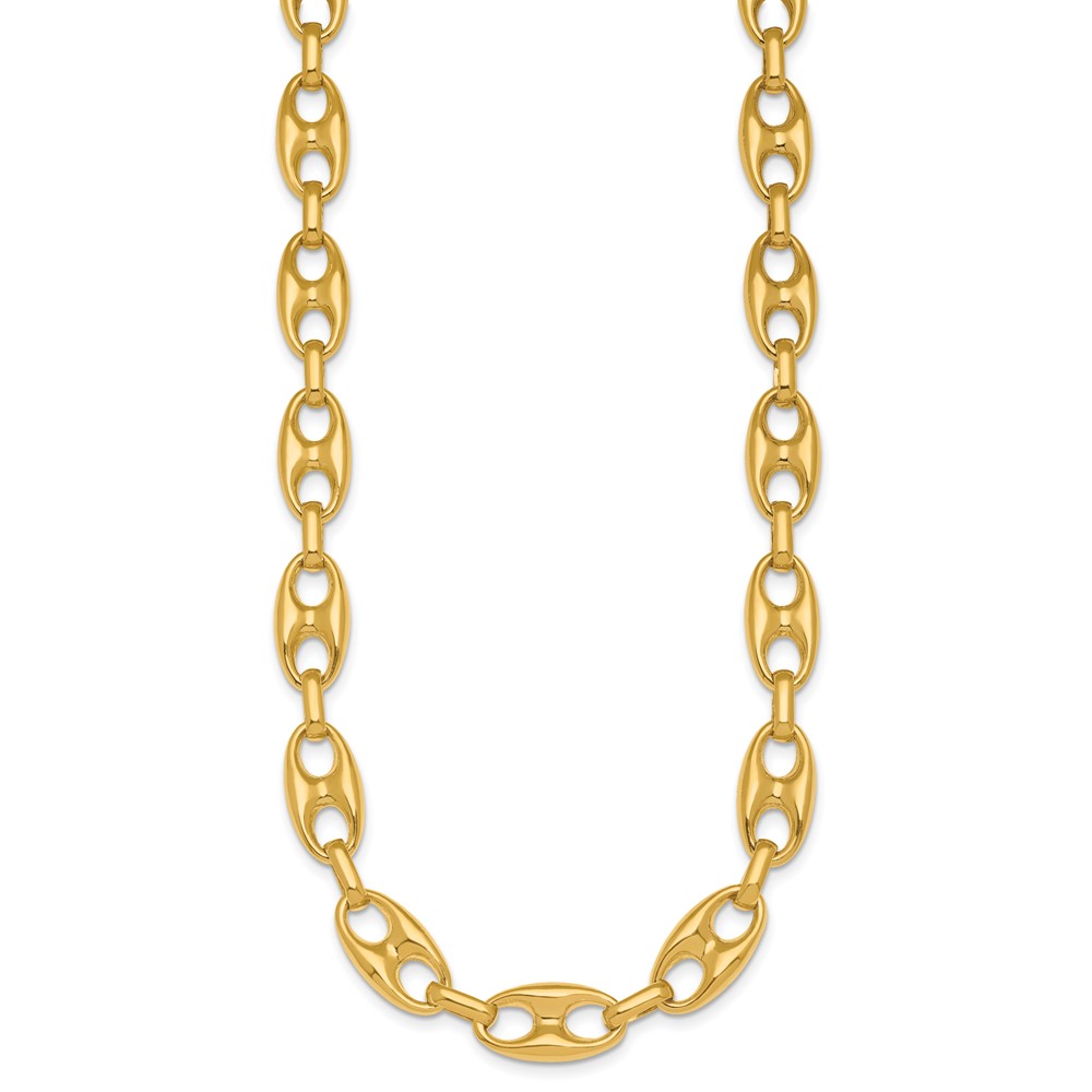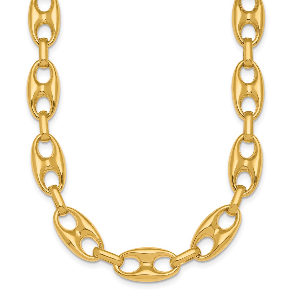 14K White Gold 22 inch 10.2mm Hand Polished Fancy Link with Box Catch Clasp Chain