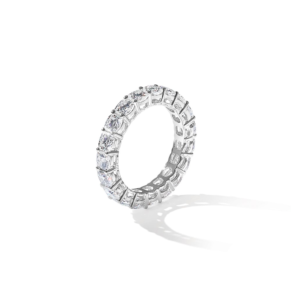 14k White Gold 3 5/8 carat Lab Grown Diamond VS+ F+ Cushion Complete Size 6.5 Eternity Band