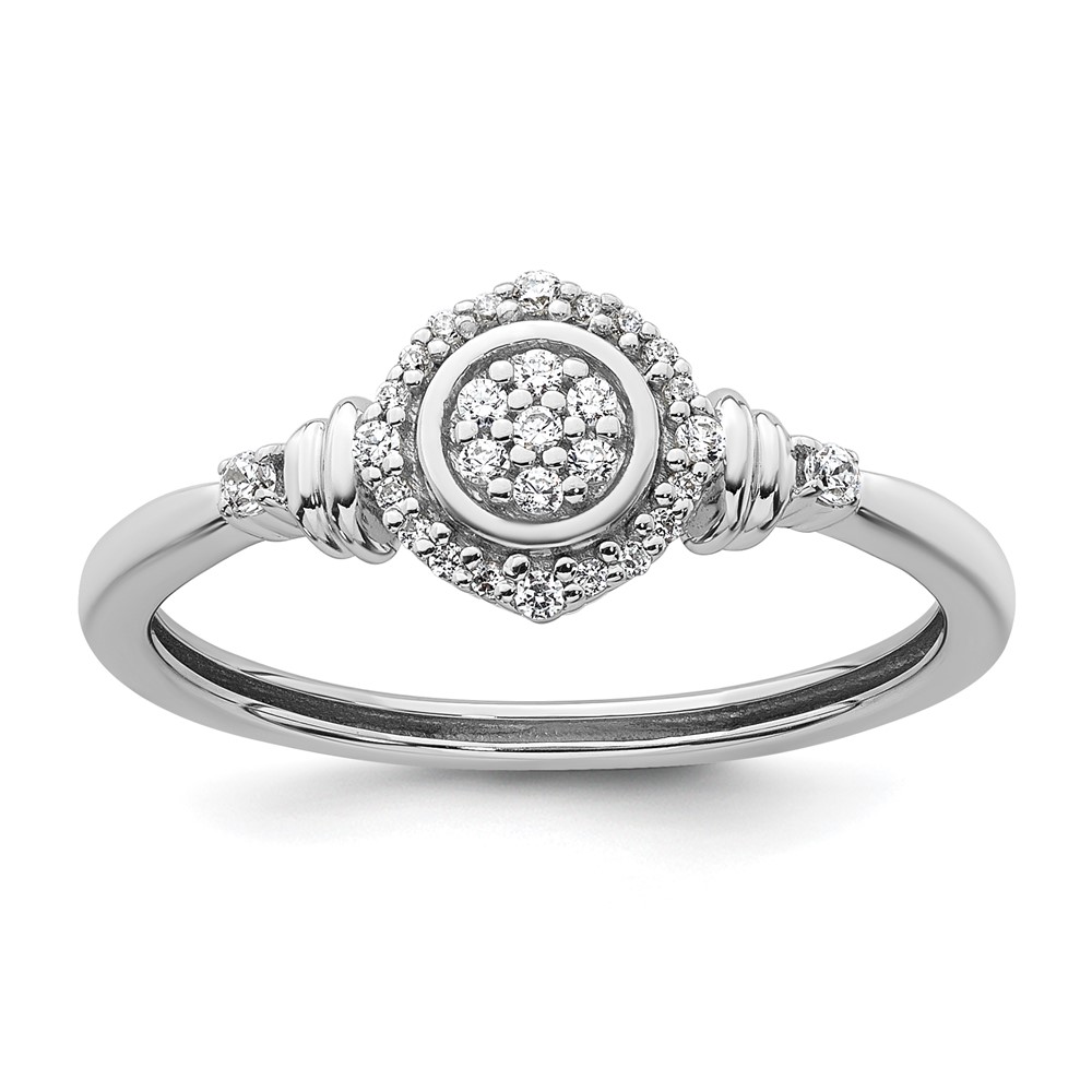 14k White Gold Complete Diamond Round Cluster Halo Engagement Ring
