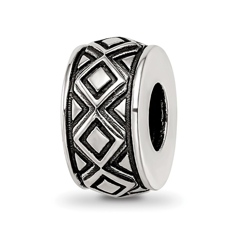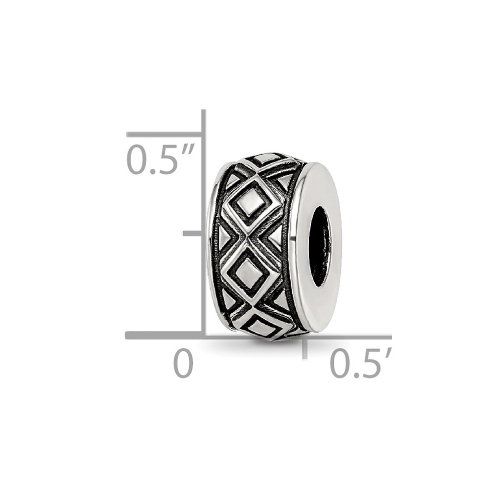 Sterling Silver Reflections Antiqued Diamond Pattern Bead