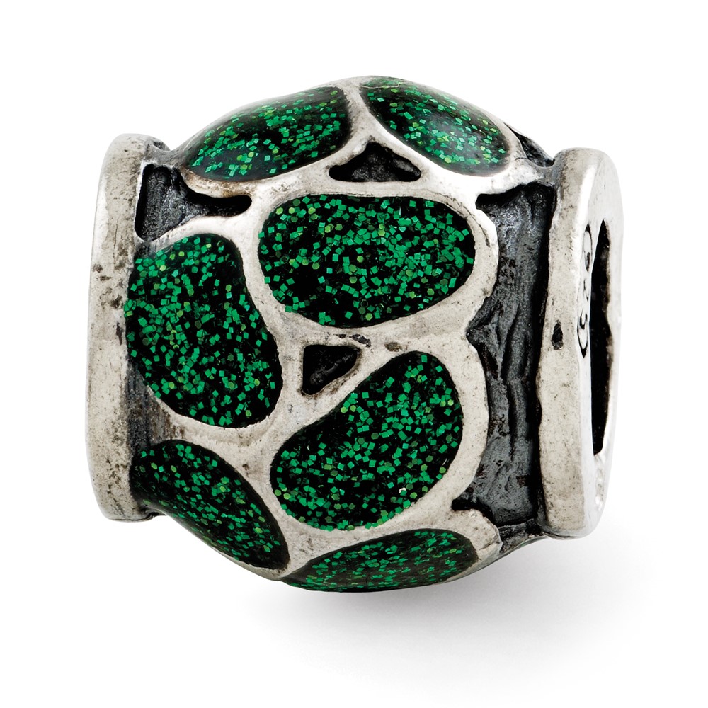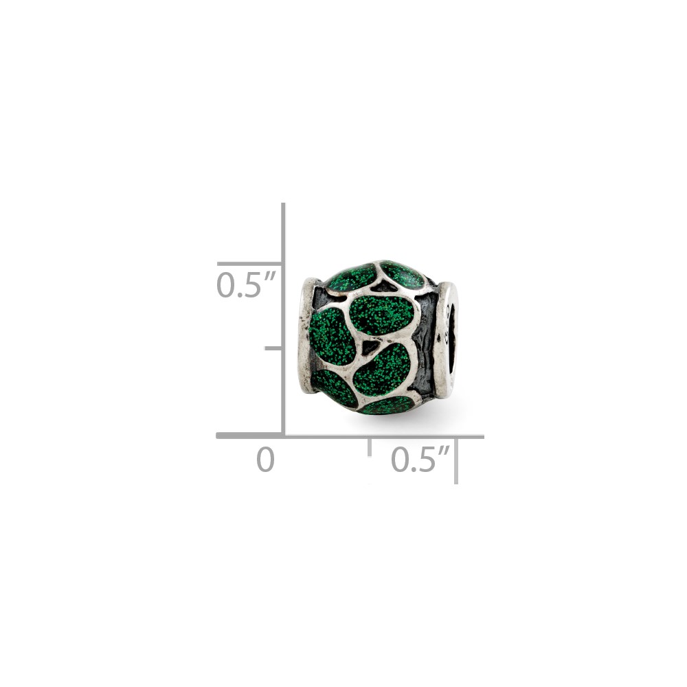 Sterling Silver Reflections Green Enamel w/Sparkles Bead