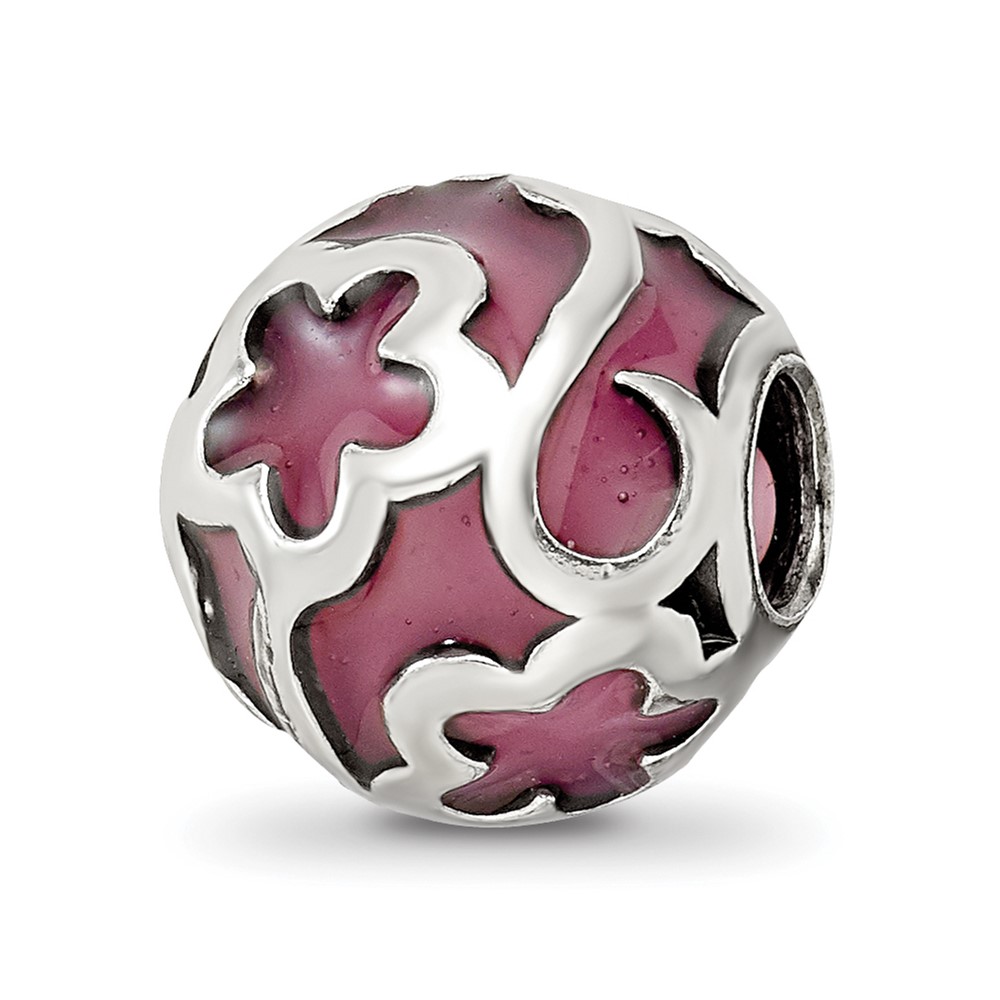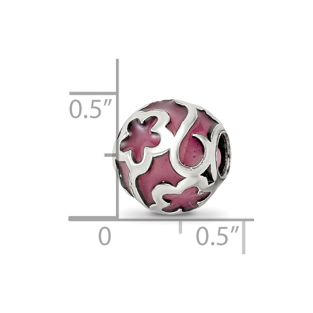 Sterling Silver Reflections Purple Floral Enameled Bead