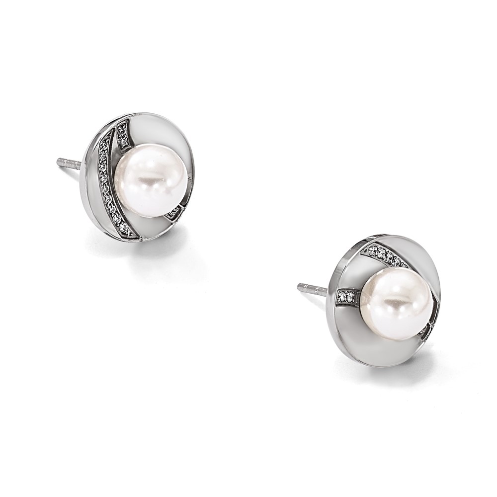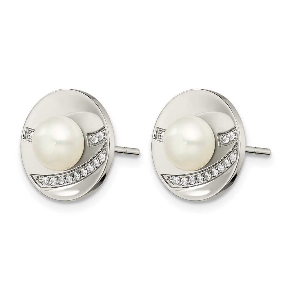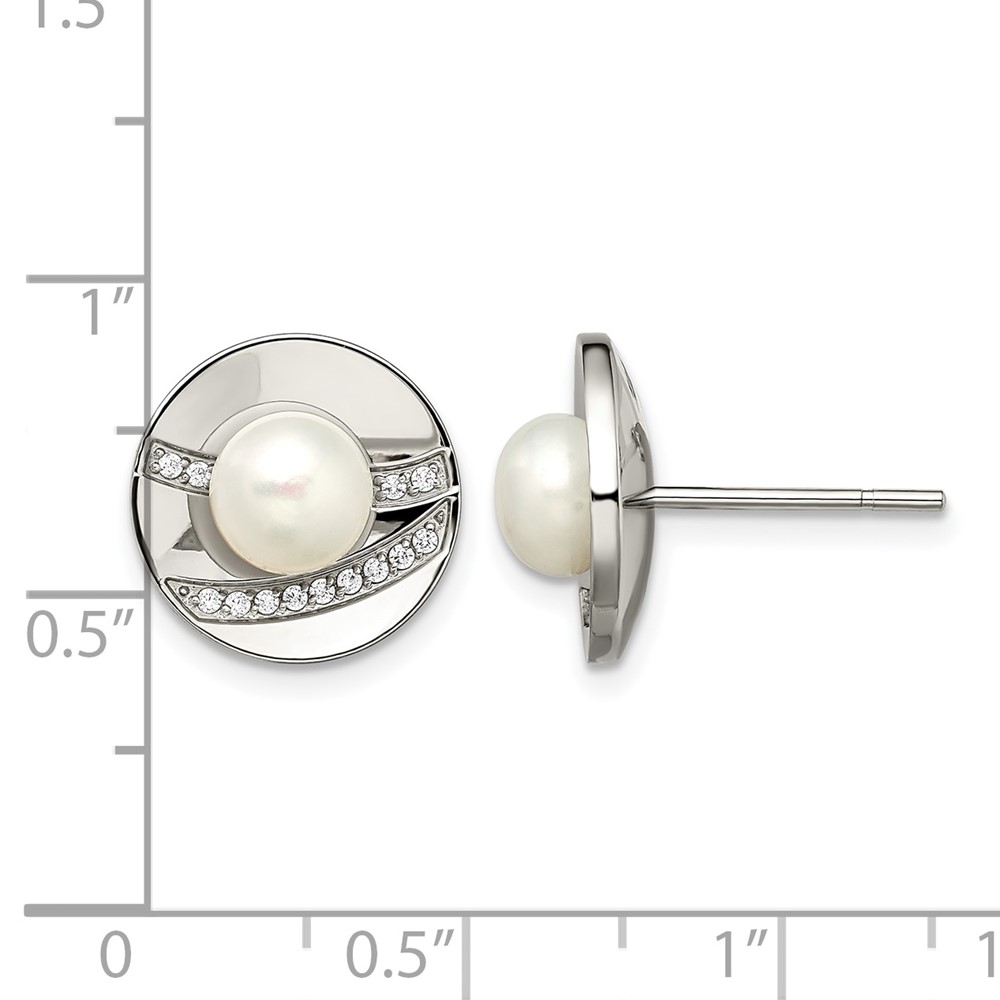 Chisel Stainless Steel Polished CZ and Freshwater Cultured Pearl Post Earrings