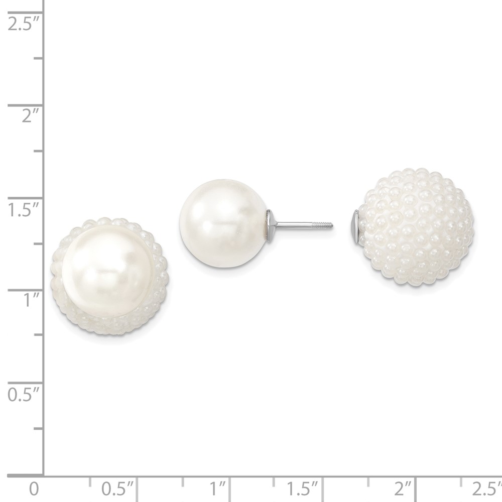 Majestik Sterling Silver Rhodium-plated 11-12mm and 15-16mm White with White Imitation Shell Pearl Front Back Post Earrings