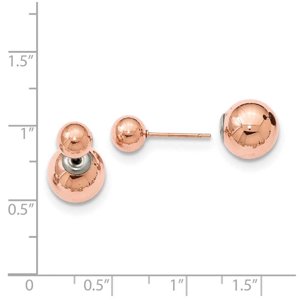 Stainless Steel Polished Pink IP-plated Ball Reversible Post Earrings