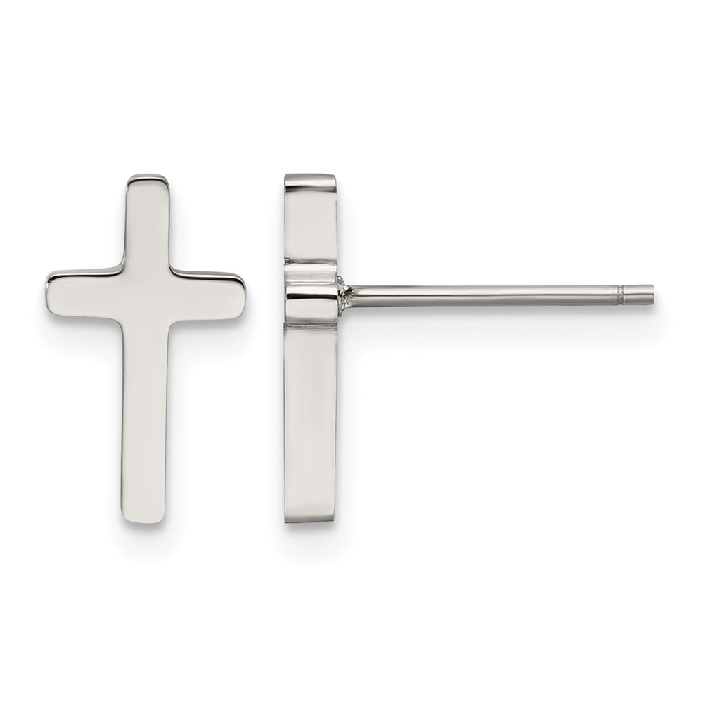 Chisel Stainless Steel Polished Cross Post Earrings