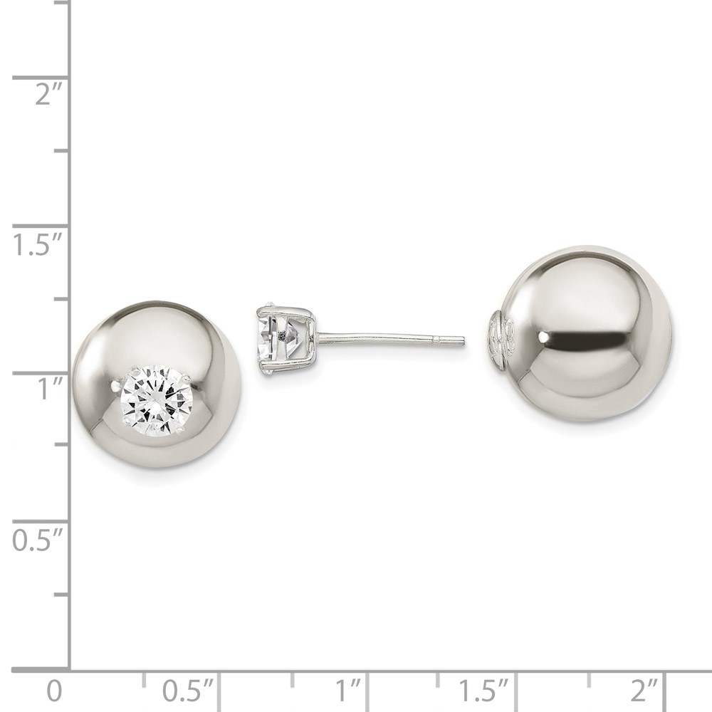 Sterling Silver Polished w/6mm CZ Front Back Post Earrings