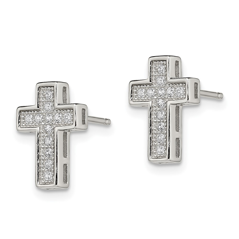 Sterling Silver Rhodium-plated CZ Cross Post Earrings