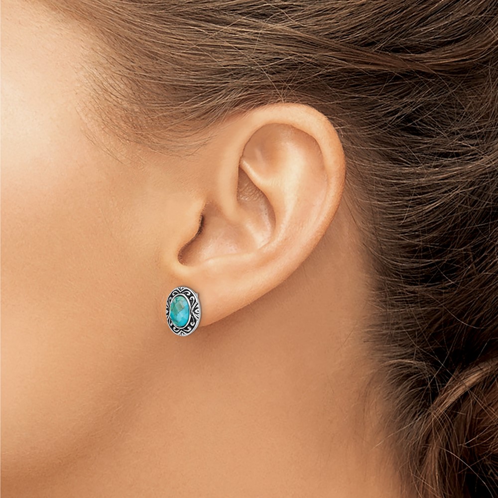 Sterling Silver Rhodium/Oxidized w/Recon. Turquoise Post Earrings