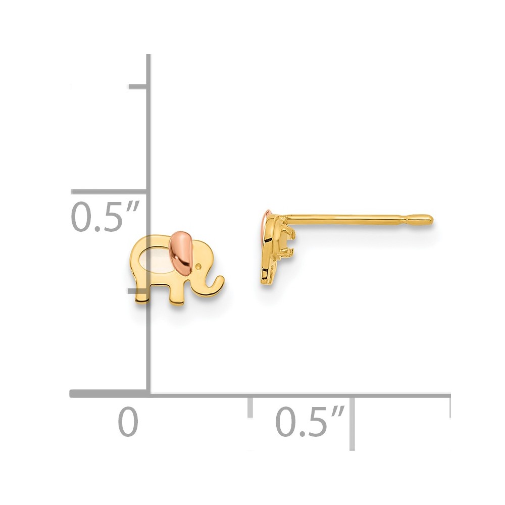 14k Two-tone Madi K Mother of Pearl Elephant Childrens Post Earrings