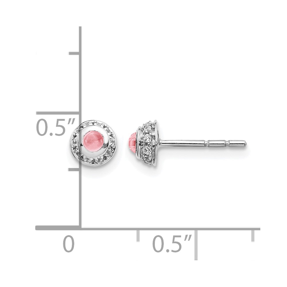 14k White Gold Diamond and Cabochon Pink Tourmaline Earrings