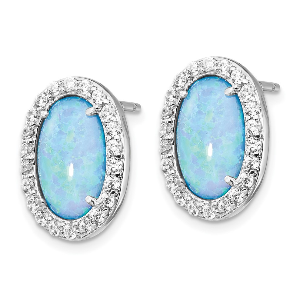Sterling Silver Rhodium-plated Polished Blue Created Opal Post Earrings