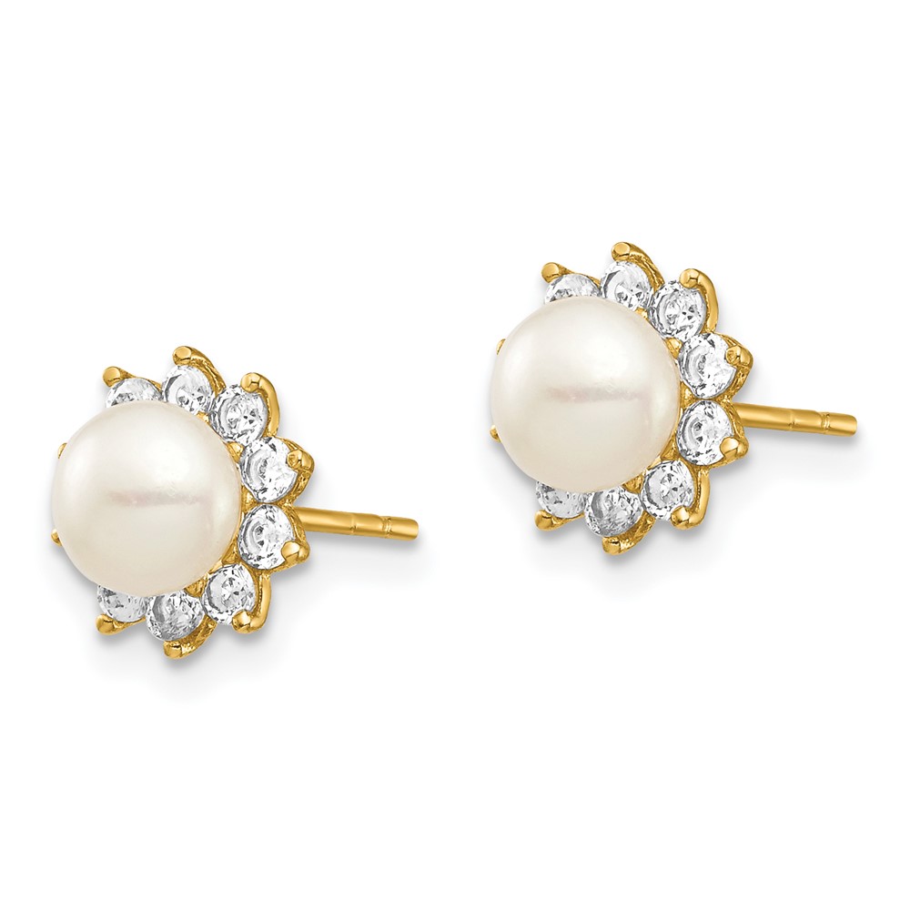 14k Madi K 5-6mm White Button Freshwater Cultured Pearl and CZ Post Earrings with Silicone Backs