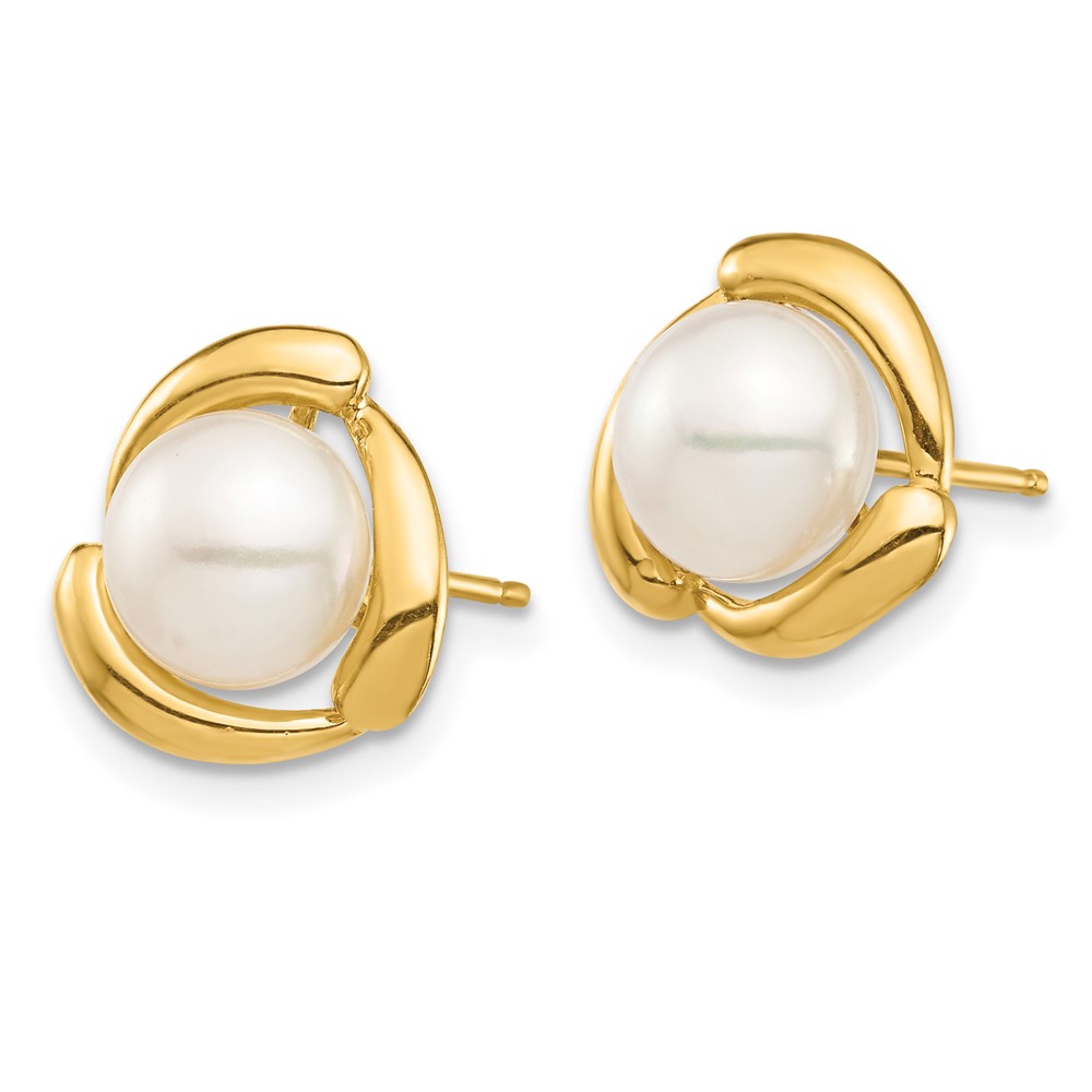 14K 7-8mm White Button Freshwater Cultured Pearl Post Earrings