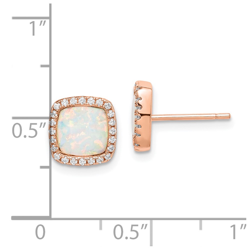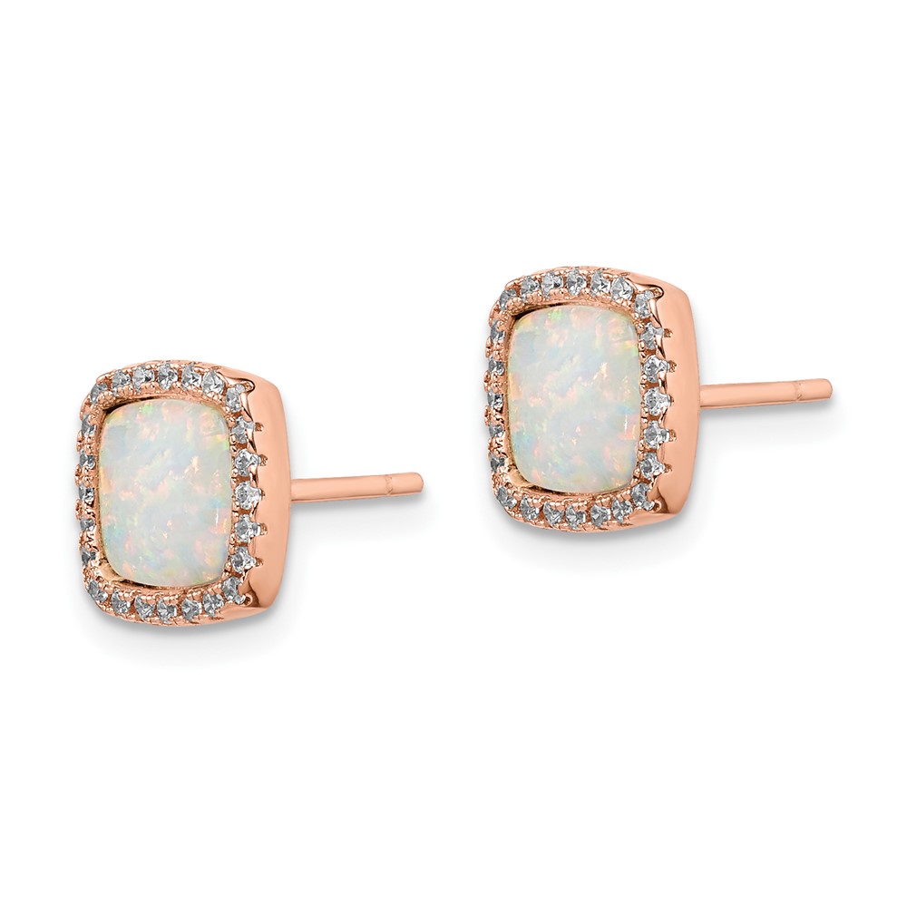 Sterling Silver Rose-Tone Created Opal & CZ Square Halo Post Earrings