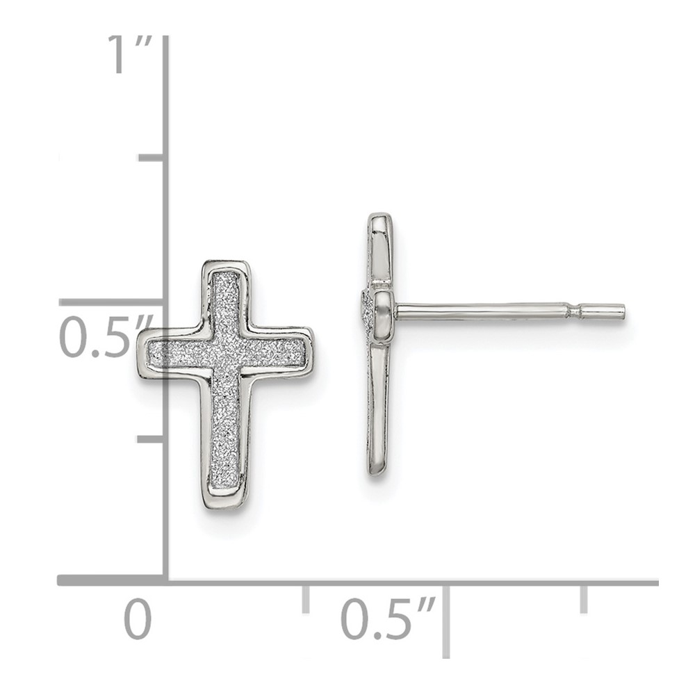 Sterling Silver Polished Glitter Infused Latin Cross Post Earrings