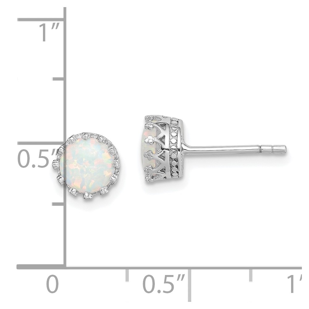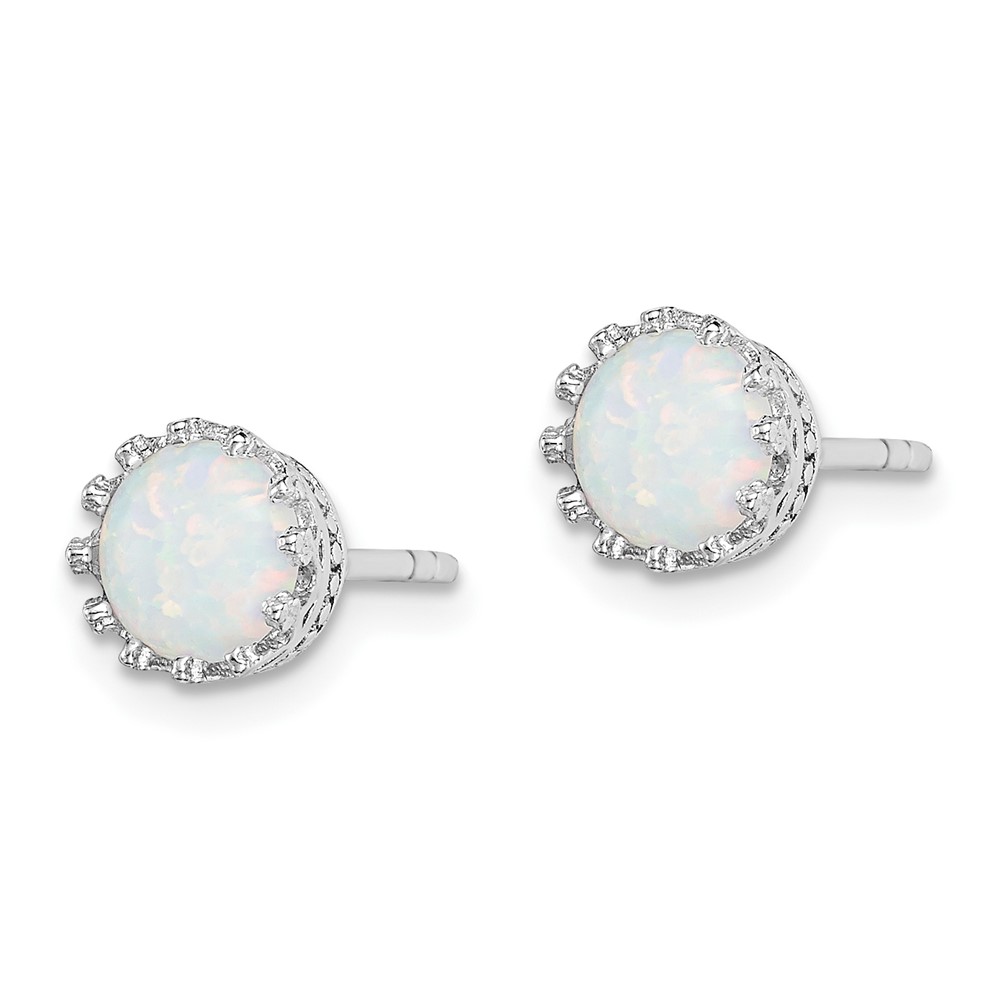 Sterling Silver Rhodium-plated 6mm Polished Created Opal Post Earrings