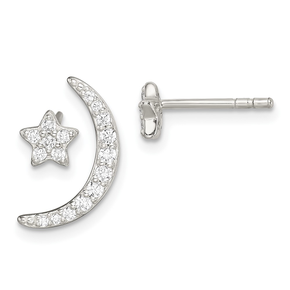 Sterling Silver Polished CZ Moon and Star Post Earrings