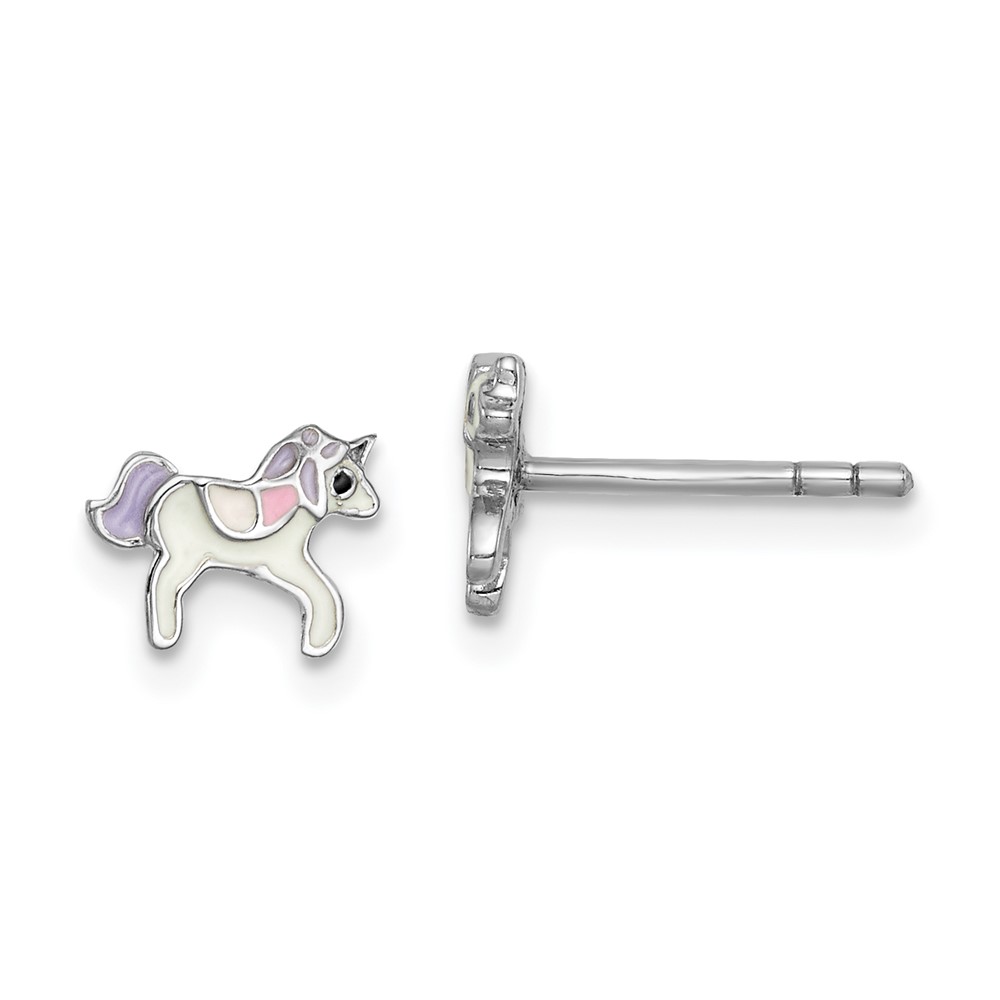 Sterling Silver Rhodium-plated Polished Multi-color Enameled Unicorn Children's Post Earrings
