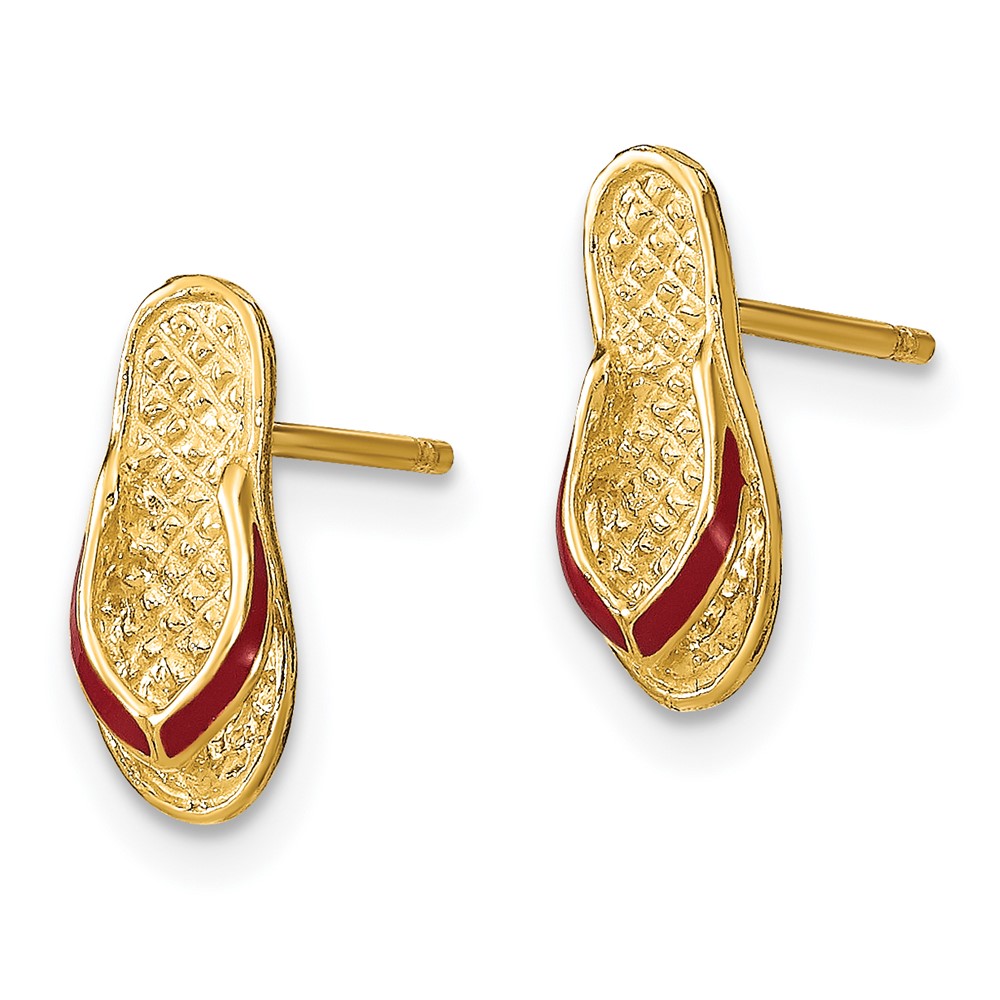14k 3-D with Fuchsia Enamel Single Flip-Flop Post Earrings