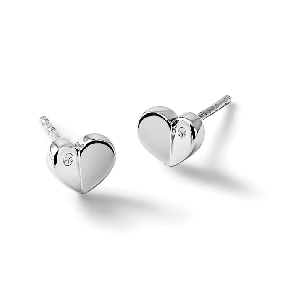 White Ice Sterling Silver Rhodium-plated Diamond Heart Post Earrings